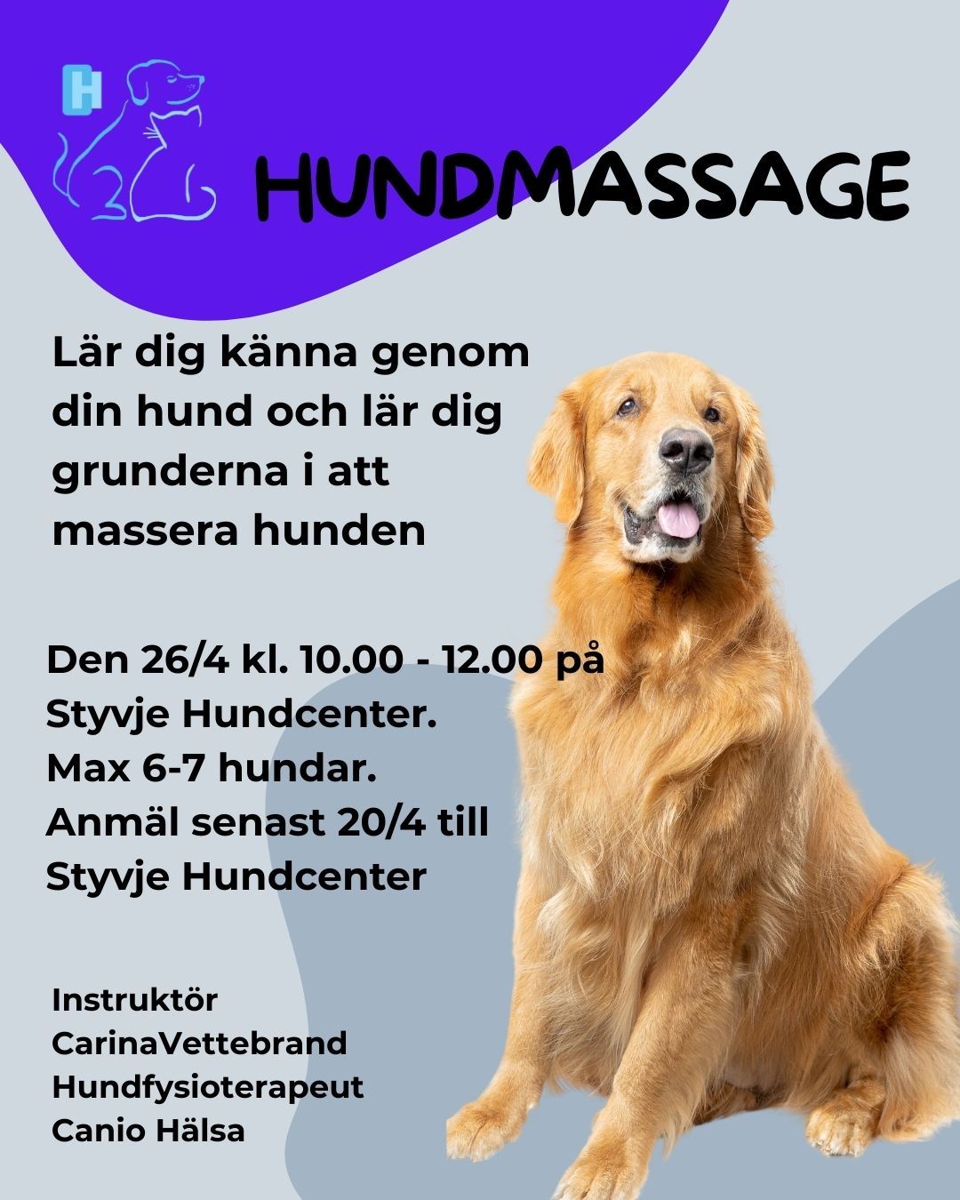 Vi kommer att hålla till i vår hundhall där ni delas upp i två grupper, varje grupp får två pass i hallen!